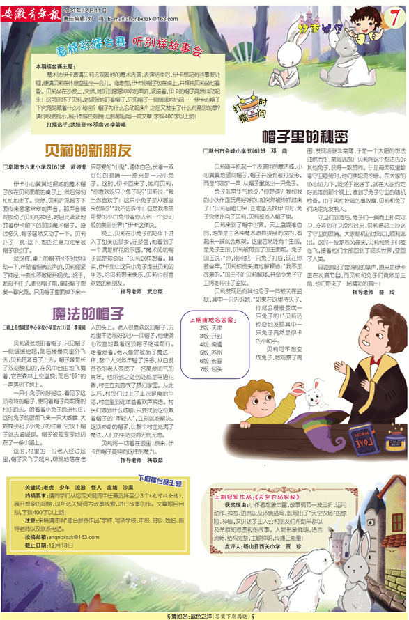 《安徽青年报·学生周刊》励志启智,开阔视野,净化心灵,陶冶情操,参与互动,集新闻性、知识性、趣味性、互动性为一体,是小学生成长的良师益友、参与互动的平台、沟通老师家长的纽带。