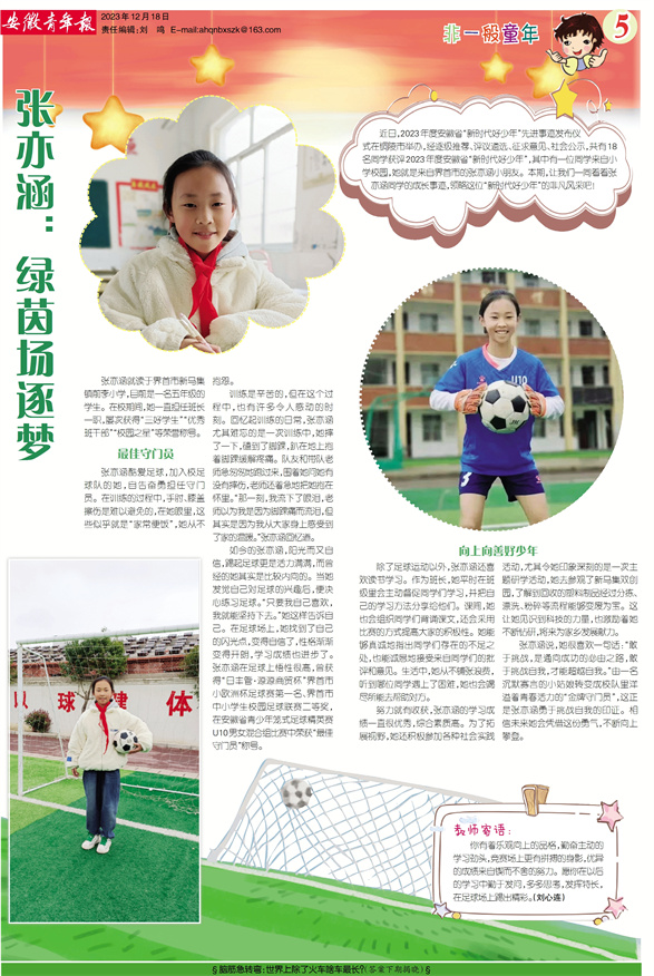 《安徽青年报·学生周刊》励志启智,开阔视野,净化心灵,陶冶情操,参与互动,集新闻性、知识性、趣味性、互动性为一体,是小学生成长的良师益友、参与互动的平台、沟通老师家长的纽带。