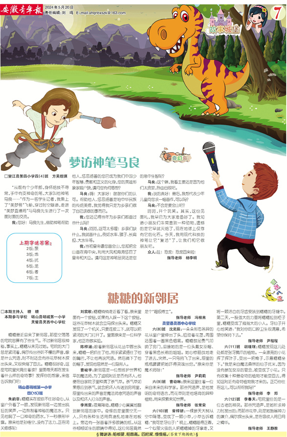 梦访神笔马良 糖糖的新邻居 上期字谜答案