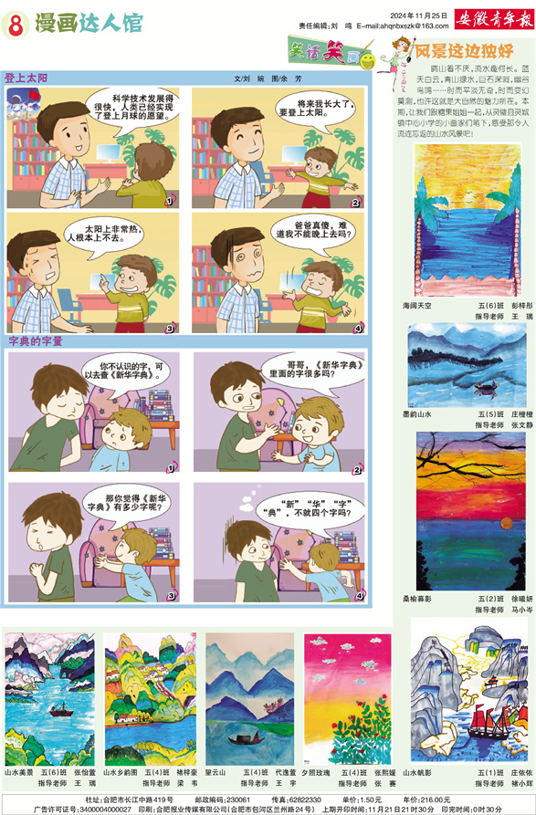 《安徽青年报·学生周刊》励志启智,开阔视野,净化心灵,陶冶情操,参与互动,集新闻性、知识性、趣味性、互动性为一体,是小学生成长的良师益友、参与互动的平台、沟通老师家长的纽带。