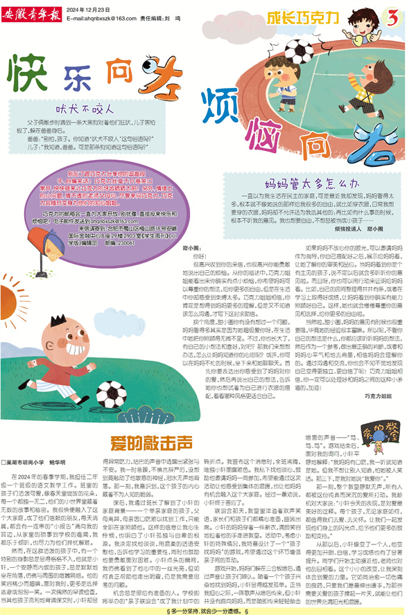 《安徽青年报·学生周刊》励志启智,开阔视野,净化心灵,陶冶情操,参与互动,集新闻性、知识性、趣味性、互动性为一体,是小学生成长的良师益友、参与互动的平台、沟通老师家长的纽带。