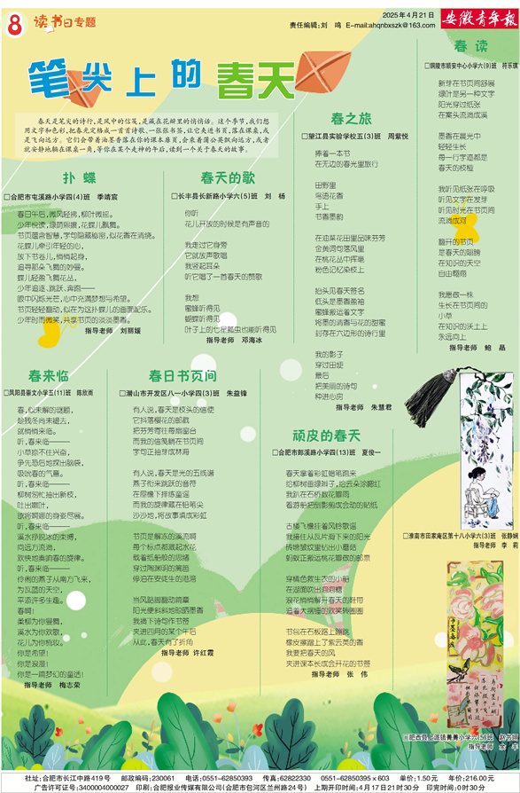 《安徽青年报·学生周刊》励志启智,开阔视野,净化心灵,陶冶情操,参与互动,集新闻性、知识性、趣味性、互动性为一体,是小学生成长的良师益友、参与互动的平台、沟通老师家长的纽带。