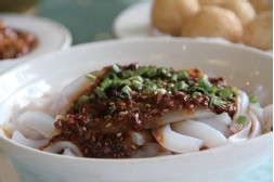 “卖凉粉喽!地道的凉粉哟!”每天傍晚,这样的吆喝声都会走街串巷,吸引人的还有那扑鼻的香味。家乡的凉粉色香味俱全,制作过程虽然简单,却能调出胜似天堂的美味:用金寨特有的“弹、爽、滑”的爽口米粉,当地的鲜辣椒面,搭配着醋、盐、黄瓜丝、米线、豆芽等多种根据自己口味调制的配料,那味道真是一绝!