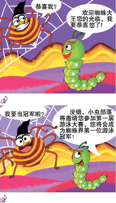强者为王?No,智者为王! 面对外敌,第一反应是什么?没错,迎战!以少胜多,以弱胜强的例子多了去,可是没有一场不战而胜的例子,除非老天要灭了你的对手!至于强敌的霸气外露,完全没必要以卵击石,来它个智取,攻其弱点,就像小虫子朵朵一样,让高傲的蜘蛛落入它的陷阱,让不会游泳的蜘蛛祈求上天保佑吧! |