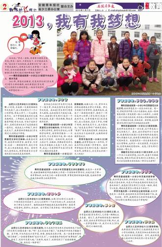 青阳县蓉城镇第一小学少年宫芙蓉花文学社方可:我的梦想是当一名真正的记者。有一次,学校里召开第三次小记者会议,我在一张档案表的第二页发现有一张小小的照片,上面有三名小记者正在采访,当时我心里就暗暗发誓:我一定要成为记者,参加采访。新学期,我真希望《学生周刊》能早日实现我的采访梦。