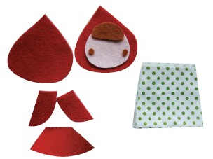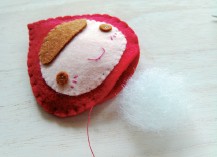 动手,动脑,想法妙! 缝出来的故事 黄小鱼姐姐说了想要表现一个故事,就得把故事的主角和背景都想清楚,接着就是一个个地准备这些材料。下面就跟着黄小鱼姐姐一起来做手工吧! 小红帽出场 2.然后把脸部缝到帽子上,再与另一片帽子相对缝合,留底部先不缝,塞入棉花后再缝合。 3.把衣服如图反面相对缝合, 留底部不缝。 4.从底部翻到正面,整理平整,把斗篷缝在衣服上,衣服上钉两个小扣子。 5.在背后缝上斗篷后片。 黄小鱼姐姐的不织布是不是很神奇,接下来就是你自己动手的时间了,外婆、蘑菇、树、大灰狼的制作过程就不传授了,相信聪明的你一定能够搞定! |