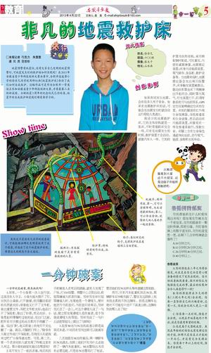 虽然这只是徐非凡同学的创意设计,可谁能保证哪天发明家就用了这个创意,并造出了这个地震救护床呢,希望这天的到来不会太遥远。