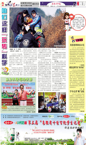《安徽青年报·学生周刊》励志启智,开阔视野,净化心灵,陶冶情操,参与互动,集新闻性、知识性、趣味性、互动性为一体,是小学生成长的良师益友、参与互动的平台、沟通老师家长的纽带。