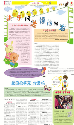 《安徽青年报·学生周刊》励志启智,开阔视野,净化心灵,陶冶情操,参与互动,集新闻性、知识性、趣味性、互动性为一体,是小学生成长的良师益友、参与互动的平台、沟通老师家长的纽带。