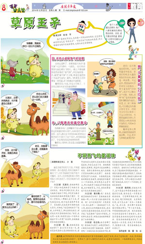 画外音:故事里的绵羊只好灰溜溜地跟着不紧不慢的骆驼,找到了水源,终止了这场比赛。此后,绵羊再也不以自己的血统到处炫耀了。它明白了,每个人都有自己的长处,也有自己的短处。一味的骄傲自大,只能过度增长自己的虚荣心和好胜心。