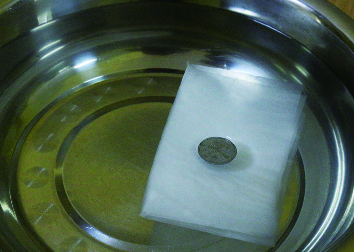 电影中,身怀绝技的侠客在水面上轻点双脚,便轻松地漂到了对岸。在一旁的麦吉猴告诉昊昊:“其实硬币也会‘轻功水上漂’哦!”“硬币怎么可能漂在水上嘛!”嘟嘟龙往盆中的水里一枚一枚地扔了好多硬币,结果都是“叮咚”一声沉到水底。麦吉猴告诉嘟嘟龙,想让一枚普通的硬币漂在水面上,还需要掌握一定的技巧。 准备材料: 2.纸巾平托着硬币,再轻轻地平放在水面上。 3.纸巾慢慢地被水浸透,沉入水底,而硬币却轻松地漂浮在水面上。 原理揭秘: