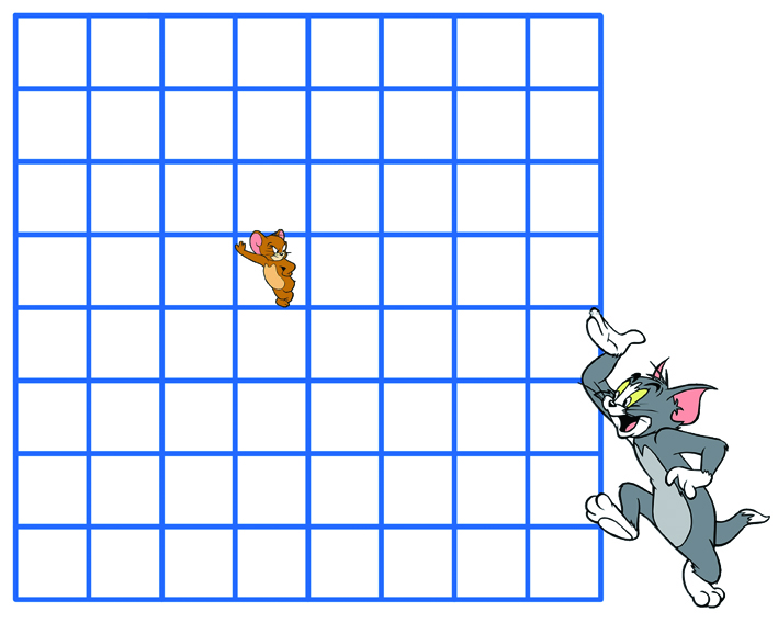 在动画片《汤姆和杰瑞》中,杰瑞鼠和汤姆猫斗智斗勇的小故事,给大家的童年带来了不少乐趣。在本期的超级大头王栏目中,昊昊就为大家请来了这两位老搭档来带领大家玩一场趣味游戏。 2.不好!杰瑞一不小心跑错房间,被汤姆抓了个正着。气急败坏的汤姆将杰瑞扔进了一个8×8的大方格里。为了捉弄杰瑞鼠,汤姆要求杰瑞在大方格中完成一项奔跑任务。只有完成这项任务,汤姆才会将杰瑞放出去。 |
