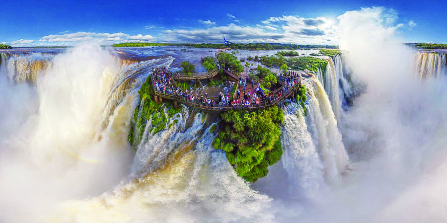 无人机航拍出来的美景,让人不得不感慨:此景只应天上有!图为阿根廷伊瓜苏瀑布的全景图。