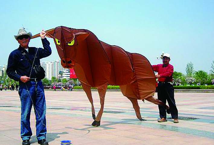 解释起来,就是当风筝下沉时,要轻轻地向上提拉风筝线;当风筝倾斜时,要把手高高举起慢慢向后拉,加大兜风力而使风筝上升;当风筝向右偏时,就将风筝线向右横拉;当风筝向左偏时,就将风筝线向左横拉。