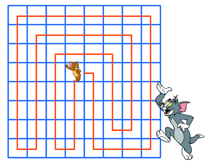 3.仔细观察图中红、蓝、黄等几个颜色不一的正方形,看看其中最小的正方形是什么颜色的? 上期超级大头王答案 1.解题绝招:从出口开始倒着推算!杰瑞吃蛋糕的路线如图所示: