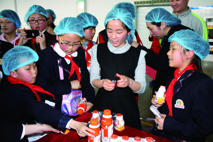 合肥娃哈哈饮料有限公司总经理徐顺旺、本报总编辑汪小雅与小记者们合影 每天喝着妈妈帮你准备的营养快线和爽歪歪,你可曾好奇过这些可口的饮料是怎么来的?合肥市华府骏苑小学的“红领巾记者团”率先发问,并在娃哈哈公司相关负责人的带领下,走进了饮料王国分厂——合肥娃哈哈工业园一探究竟。现在,把时间交给小记者们,让他们带大家感受一场饮品“诞生记”。 本报记者 朱惠惠 巧克力 昊 昊 学生记者 合肥市华府骏苑小学 六(2)班 安琛琛 四(1)班 谢可涵 六(1)班 张雅雯