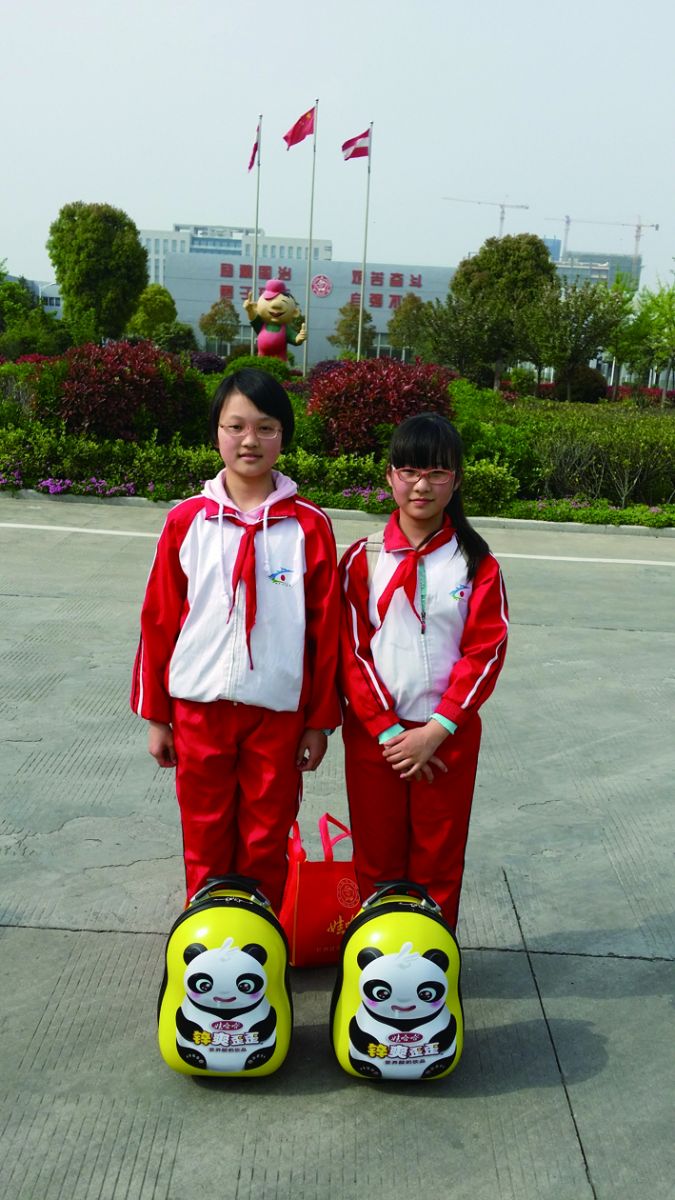 小记者们听工作人员讲解饮品的生产过程 来自新西兰的奶粉 小记者们争先品尝新鲜出炉的饮料 安全的“娃哈哈” 小记者们在活动过程中赢得的奖品小拖箱 |
