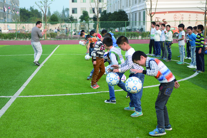 由绿茵场上这群挥汗如雨的“男子汉”们组成的足球社团,成立于去年的9月份。目前,足球社团里活跃着东西校区两支足球队,每次参训人数达61人。球队的两位教练,赵文生老师是舒城县万佛湖足球队队员,王兆权老师也是一位“久经沙场”的老球员。在两位教练的带领下,社团里的小球员们正感受着足球的乐趣。