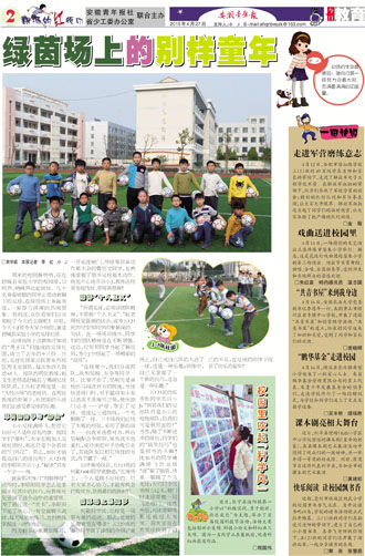五(3)班的张青松同学告诉小J:“别看我们的足球队只是小小的校级球队,但我们可是很厉害的!”当然,除了不断进步的球技,同学们的“搞笑技巧”也是相当的不赖!比如有的同学被满场飞的足球“迷”晕了脑袋,结果一脚踢了个乌龙球;有的同学因为用力过头,射门时连球带鞋一同飞进球门。这些场景,可比喜剧电影还能逗人发笑。而大家也在欢笑中找到了自己的不足,在足球的陪伴下收获了快乐的童年!
