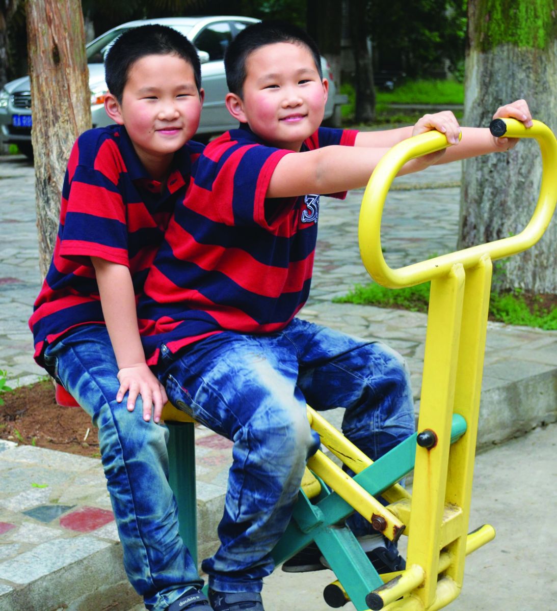 今年12岁的双胞胎兄弟吴思明(在2013年国际环境小记者项目比赛中,曾获11~14岁年龄组照片类作品全国二等奖,详见本报2013年10月14日头版)和吴思远,在放学之后赶到学校机器人教室。在刚刚结束的2015合肥市青少年机器人比赛综合技能项目中,弟弟吴思远和队友杨昱展获得竞赛小学组第一名;哥哥吴思明和队友张智远获得二等奖。好成绩是过去式,两人并没有因此停步不前。除了完成六年级的学业,兄弟俩要为接下来的安徽省青少年机器人竞赛综合技能比赛做准备。“比赛的主题是‘嫦娥登月’,所以我们的机器人是模拟嫦娥探月工程设置的,主要由释放月球车、回望拍照、月面搜索、采集月岩、定点观测、清除月面障碍、树立标志、回收设备、月面摄影等环节组成。”说起比赛,兄弟俩侃侃而谈,“比赛的时候,在规定的两分半钟时间里,完成的任务越多得分越高。如果要想达到这个目标,就得合理规划路线,并在规定的时间里对任务进行取舍,这就要考验编程水平。” 全能双胞胎