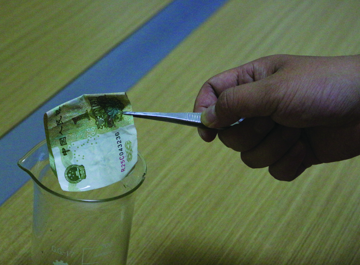 “呼啦啦!呼啦啦!”脾气暴躁、生性傲慢的火娃瞪着眼睛叫嚣着,好像这个世界上没有谁是它的对手。“不管什么东西,我都能将它烧成灰!”火娃瞟了一眼站在一旁吓得浑身发抖的纸张和布匹,感觉自己得意得快飞起来了。 准备材料: 2.用长镊子夹住纸币,转移“阵地”,放到另一个烧杯口。一定要远离酒精,注意安全。