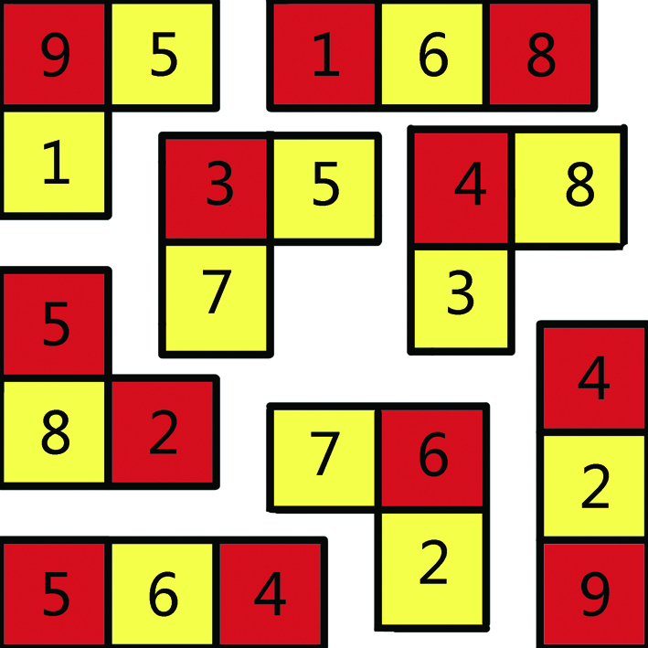上期超级大头王答案: 2.答案如图(不唯一): 3.数字分组如图: |