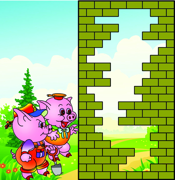 你以为小猪们一起住进了老三的石头房子里,《三只小猪》的故事就算完了吗?NO!故事可没有结束。这天,昊昊无意间捡到了小猪们不小心丢失的日记本,并从其中得知了小猪的烦心事。大家先别忙着谴责昊昊偷看小猪们的日记,赶紧来帮小猪们想想办法解决这些疑问吧! 1.日记一则:5月1日,补墙。凶恶的大灰狼真是越挫越勇,它日夜锻炼体力,还找到了一只大铁锤。这不,我们房子东面的一堵墙就被它砸了个大窟窿。幸亏我们跑得快,才逃过一劫。现在,当务之急就是补墙。可是,我们得准备多少块砖才能将这面墙补起来呢?