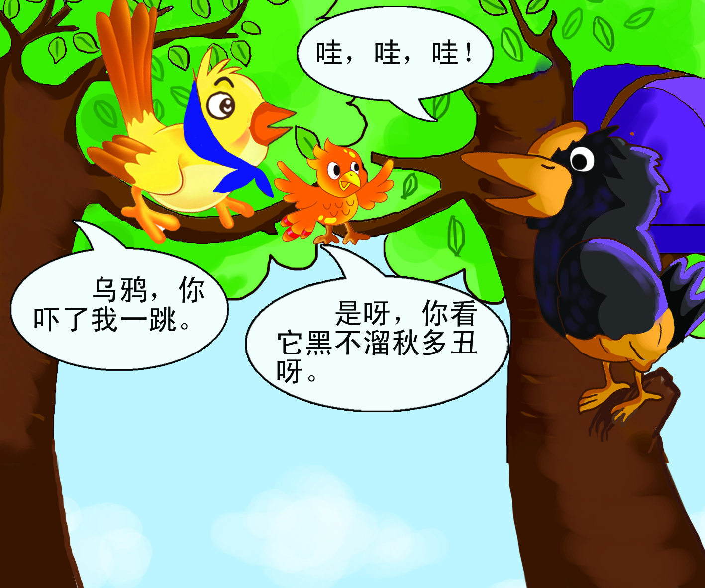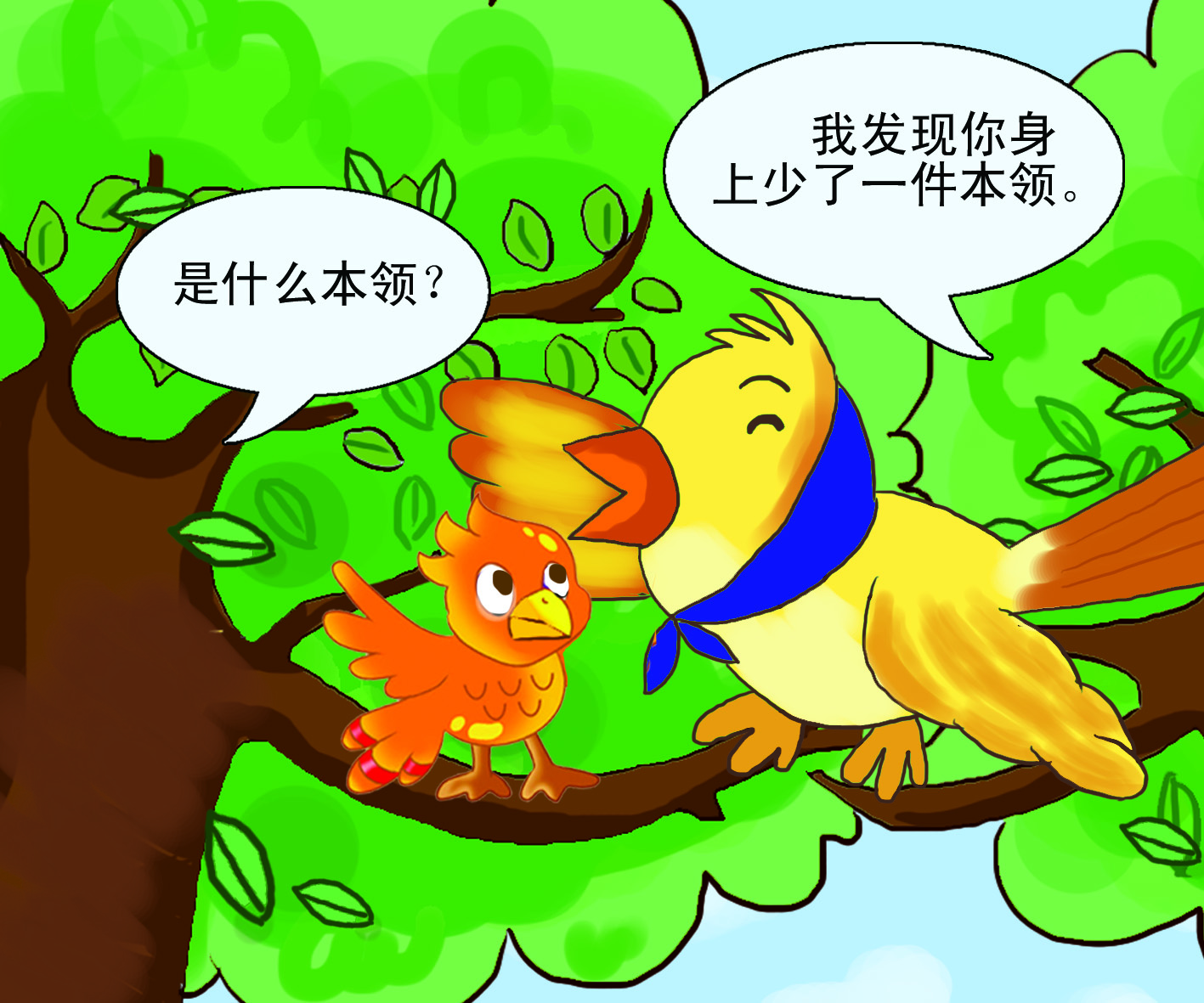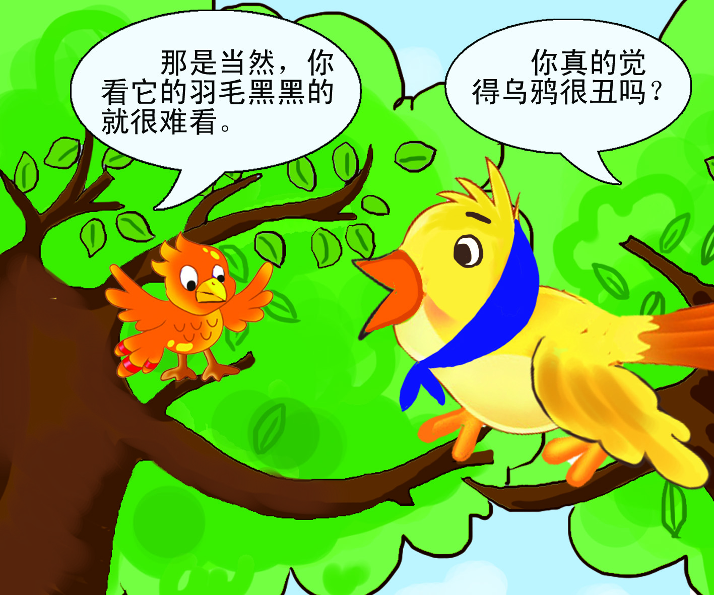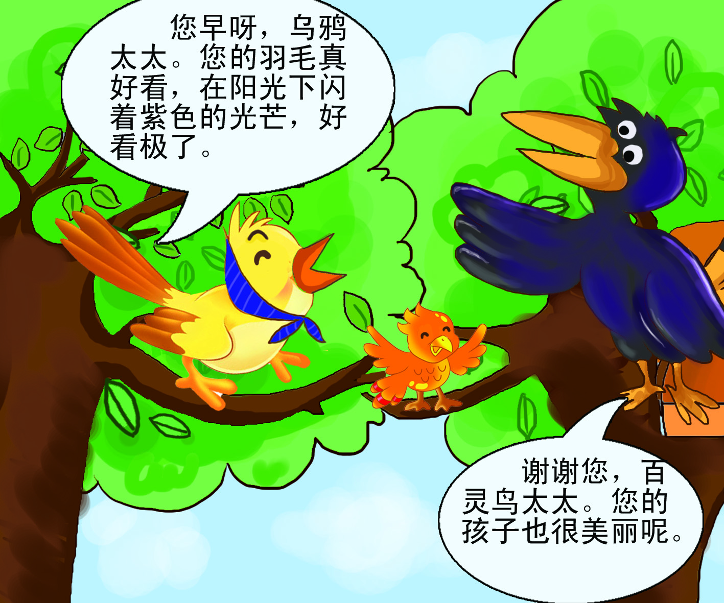 画外音:其实故事里的百灵鸟缺少的就是欣赏别人的本领。在生活中,我们与其常常抱怨,不如认真地学会用真诚来欣赏这个世界。因为当你学会认真欣赏这个世界,欣赏每一个人的时候,也是你得到别人赞许的时候。