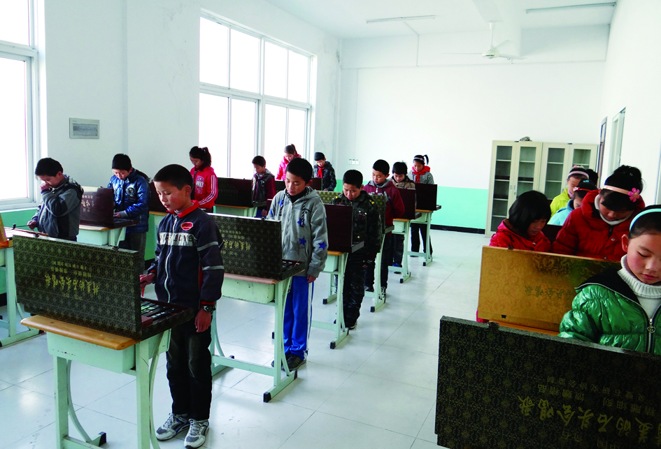 “只要掌握了其中的技巧,学起来就会容易很多。学会歌曲的节奏,用均匀的力度,带有感情的去敲击每一根石条。这样就可以很好地敲出清脆悦耳的音乐。”对于演奏姿势,四(4)班王丹丹同学介绍道:“敲石琴的时候,并不是胳膊在动,而是手腕动。这样,才能掌握好演奏技巧。”