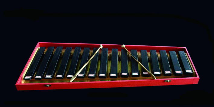 走进磬石琴班,最耀眼的当属那一大盒一大盒的黑色长条石块。眼见小J好奇,同学们还神秘地卖了一个关子:“这看起来是石头,实际上可不仅仅是石头!”那这些石头究竟有什么用途?四(4)班张子豪同学告诉小J,这就是大家所习的磬石琴。