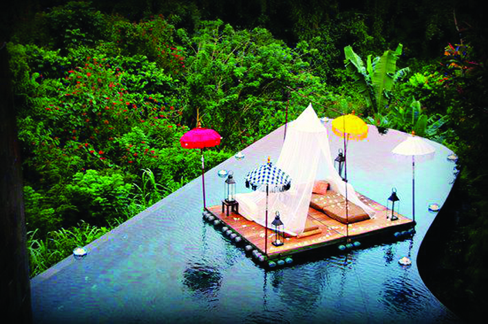 巴厘岛是一个度假胜地,这里有着著名的乌布空中花园酒店。它有独特的双层凌空无边泳池,延续了山腰的自然曲线,直面巴厘岛最美的丛林和金光闪闪的庙宇。房间里有颜色复古的木头家具、拱门和令人意外舒适的被褥。像家,但比待在家里感觉更妙。