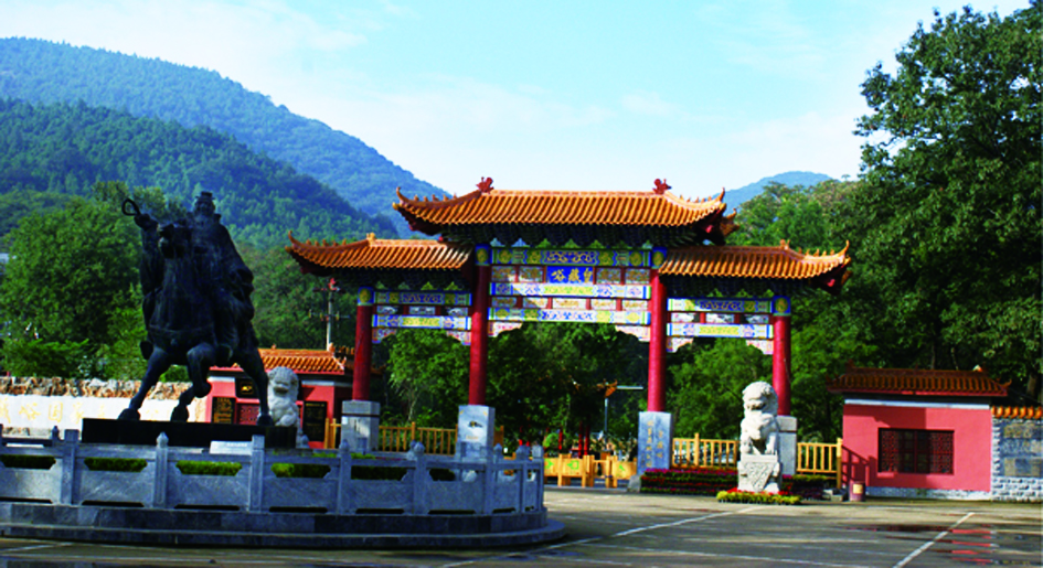 走进皇藏峪,首先映入视野的是山门牌楼,它高10米,宽14米,为三楼三门九彩建筑,庄重典雅、巍峨壮观。门楣上书“皇藏峪”三个镏(liú)金大字,门楣背面是“汉王流韵”四个大字,圆熟俊秀,超凡脱俗,耐人寻味。