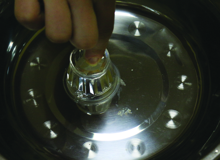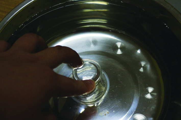 4.效果观察。等待一会再垂直地拿出杯子,此时,杯底的纸巾会不会湿呢?结果表明,纸巾的确是滴水不沾。