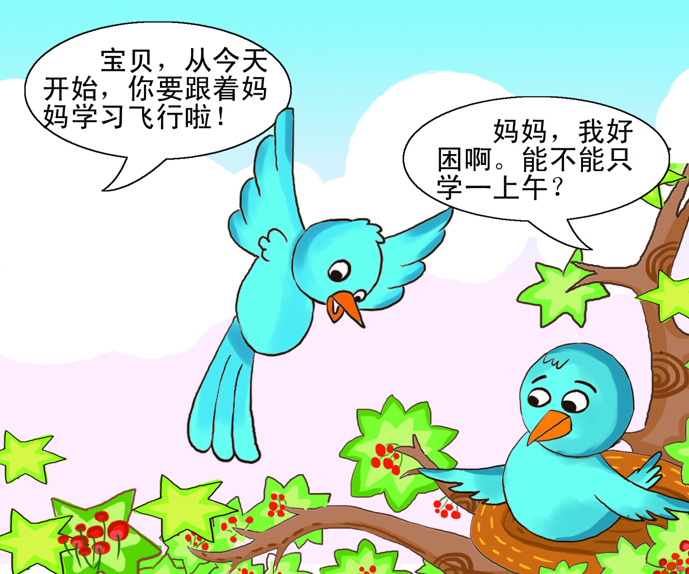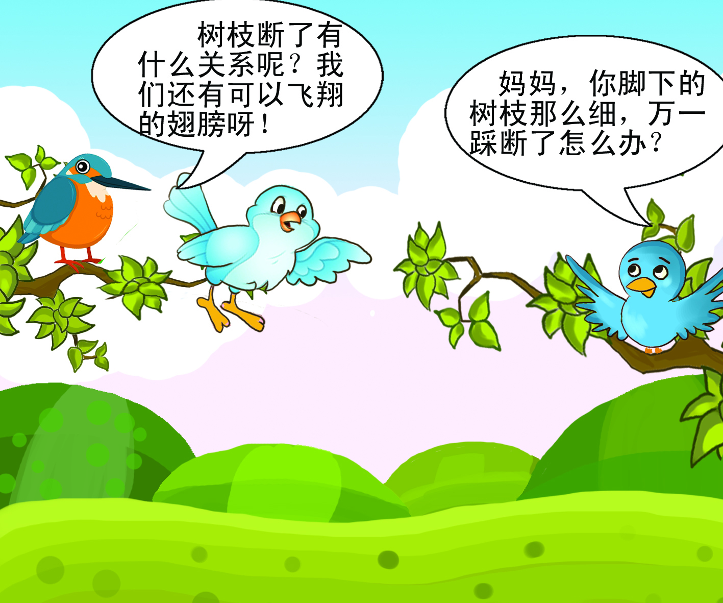 编/郝林敏 绘/余 芳 站在树上的鸟儿,从来不会害怕树枝断裂,因为它相信的不是树枝,而是自己的翅膀。同样的,在成长旅途中,只有奋斗才能给你最大的安全感。不管你身在何处,只要你有飞翔的能力,你还有什么好担心的呢?与其每天担心这个担心那个,还不如趁着现在开始努力呢!所以,啾啾要想成为一只真正的鸟儿,还是要跟着妈妈好好学习飞行哦!