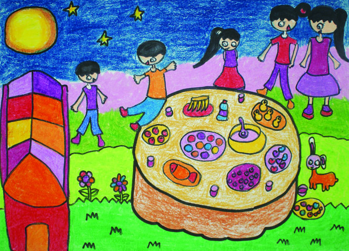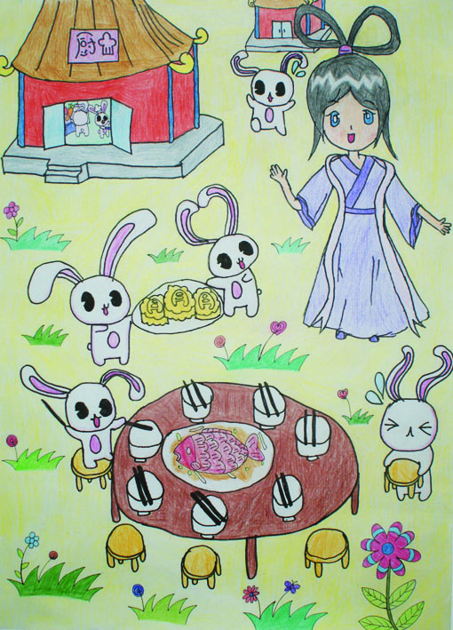 中秋夜,亮光光,家家户户赏月忙。中秋节到了,闭上眼睛想一想,你想过一个什么样的中秋节呢?是赏月吃大餐,还是和嫦娥姐姐一样,在小白兔的陪伴下遨游太空?霍邱县城关镇中心小学的同学们拿起了画笔,为我们描绘出了他们心目中的梦幻中秋。 《快乐的中秋节》霍邱县城关镇中心小学四(1)班 李悦铱(yī) 《中秋赏月》霍邱县城关镇中心小学六(5)班 张欣桐 《嫦娥奔月》霍邱县城关镇中心小学二(2)班 周怡伊 《月宫上的中秋节》霍邱县城关镇中心小学五(5)班 周艺卓 |