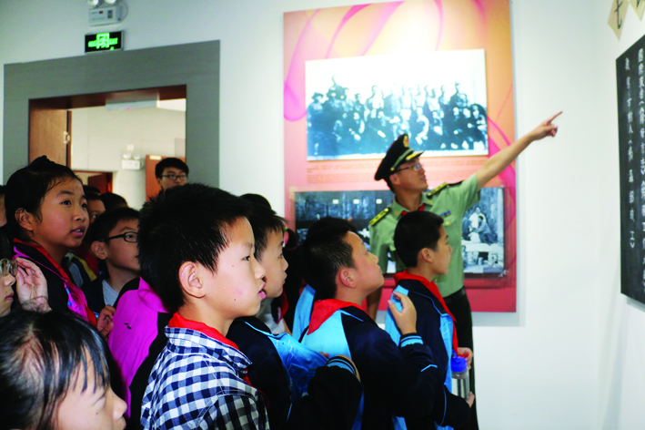 图说:18日,岩寺小学的同学们在徽州区人民武装部张灿主任的带领下,参观了新四军军部旧址纪念馆。图中,同学们正在认真倾听讲解员的讲解。