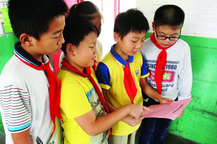 图说:9月22日,来自淮北市铁路派出所的警察叔叔们走进淮海路小学,给同学们上了一堂生动的铁路安全常识课。图为同学们正在阅读《铁路公安安全提示》。