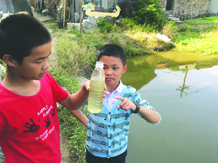 六(1)班 陈月生:经过调查,家附近的水塘是被生活垃圾污染的。池塘水面上漂浮着满塘的垃圾,人们路过那都会捂着鼻子走。池塘离学校很近,我们每天都能闻到臭味。 |
