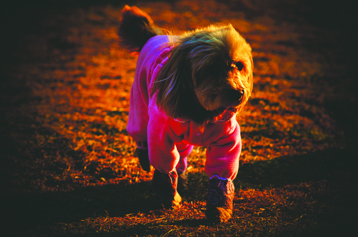 转眼间,公园里的大树们披上了一层金黄色的大衣。是啊,秋天来了,气温“嗖”的一下转凉了,主人也穿上了自己的秋衣秋裤,不过主人可没忘了我,看看我的秋衣穿得怎么样!