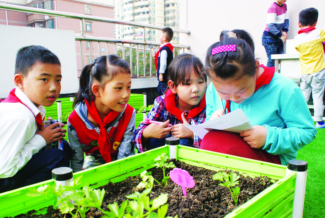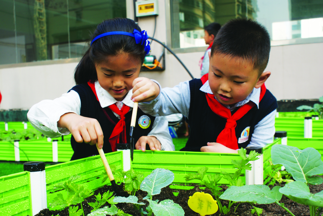 谁说生活在城市里的小孩只知道钢筋水泥游乐场?合肥市华府骏苑小学(以下简称华小)的小农场主们高调宣布:“种植蔬菜可不是农村小伙伴们的专利,我们学校的空中小农庄可是我们这些种菜达人大显身手的好地方!”