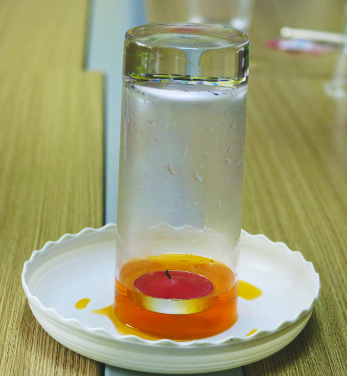 3.用透明玻璃杯盖住燃烧的蜡烛;