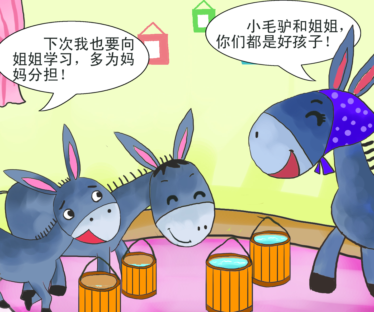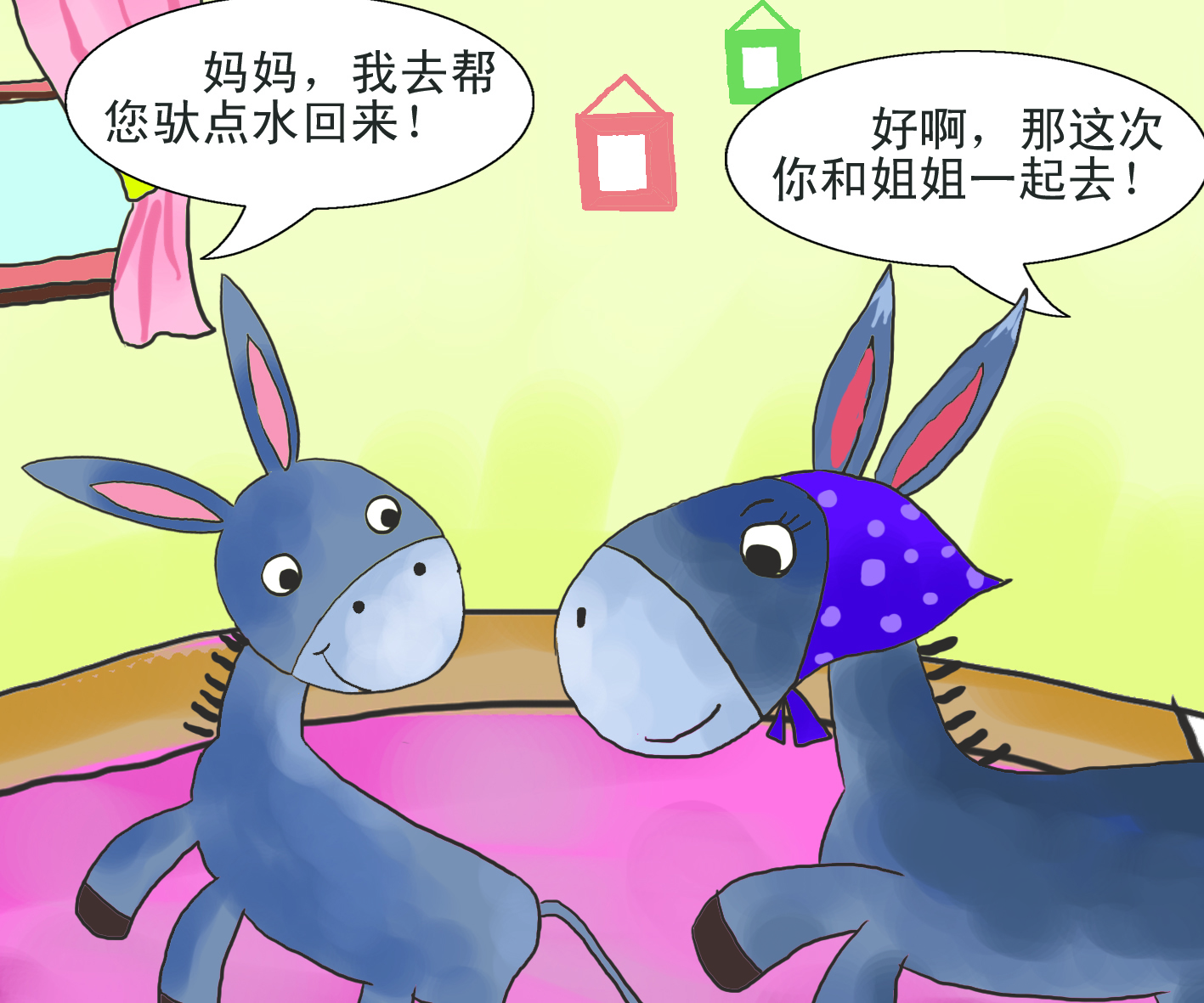小毛驴长大了,看到辛苦的驴妈妈每天忙忙碌碌,想帮妈妈分担一些事,正好看见家里没有水了。