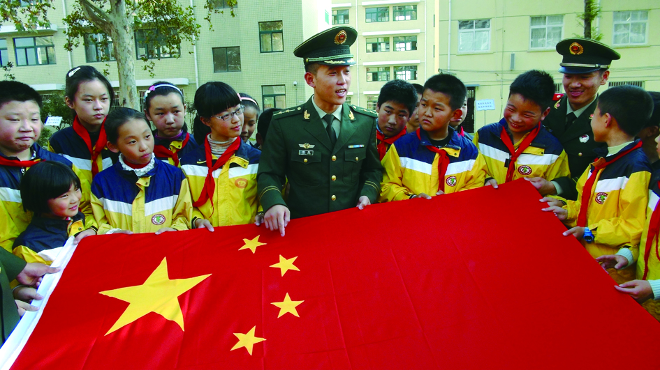 时间:11月6日 地点:滁州市琅琊路小学 图说:“国旗上的五颗星星分别代表什么含义呢?”滁州武警支队官兵叔叔们展开红旗,为同学们讲授《国旗法》,以及五星红旗各元素的深刻内涵。