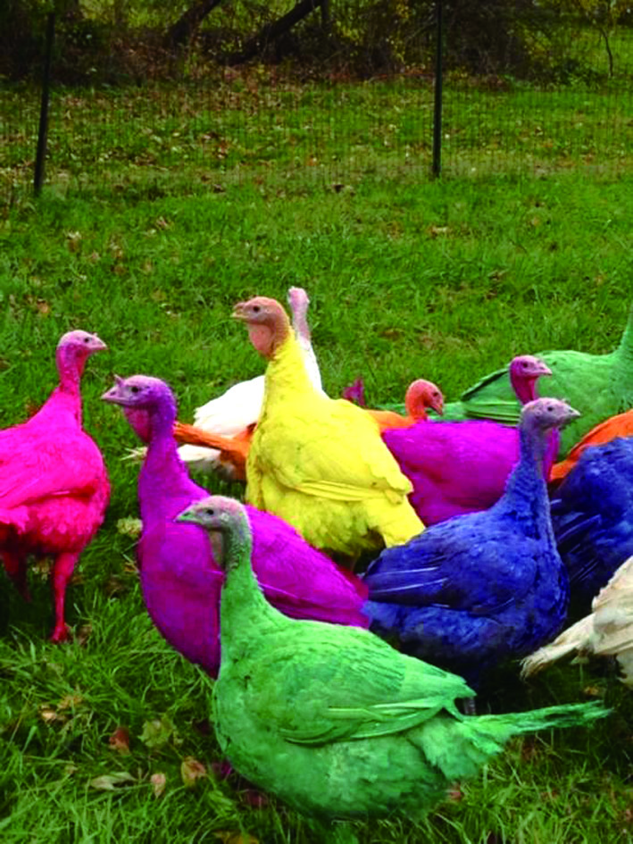 感恩节就该过得五彩缤纷,美国的火鸡们也不例外。紫色、橙色、黄色、绿色……(可是你们知道自己是节日当天的主菜吗?)