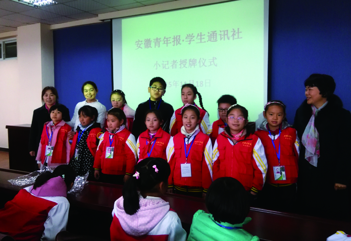 11月18日,《安徽青年报》学生通讯社小记者授牌仪式,在固镇县实验小学举行。学校80多位新推选的小记者齐聚一堂,参加了一场新闻采写培训活动,并领取了《安徽青年报》小记者证和红马甲。后期,小记者们将“持证上岗”,为同学和老师们采写身边的新闻。 指导老师 毕美华