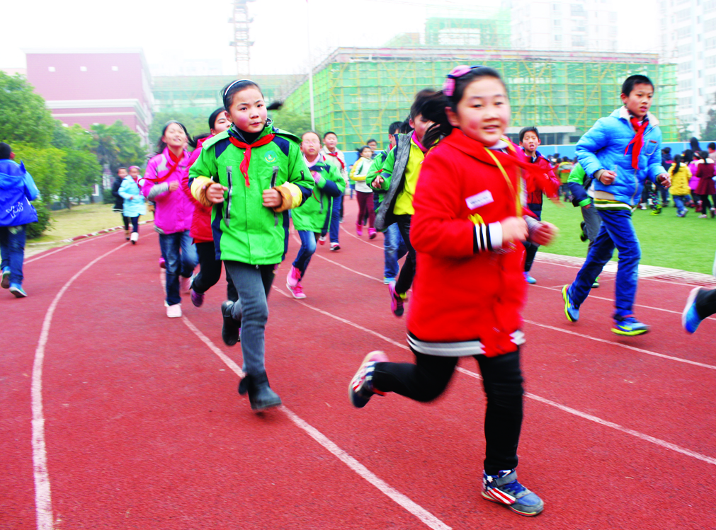 “校园马拉松引进校园,是让所有学生参与到全球参与人数最多也最健康的跑步运动中来。针对小学生的身体素质状况,把42.195公里的长度平均分配到一个冬季的时间。这样,大家每天跑1.5公里,冬季结束就能完成一场马拉松!”原来,校园马拉松就是全校3~6年级的师生一起参与的、在学校操场举行的马拉松累积公里运动项目。从11月中旬开始,除去天气状况影响无法完成跑步项目外,累积到目前为止,莲小的倒计数公里牌上赫然写着一个数字“34”!据姚校长介绍,校园马拉松很好地将锻炼孩子们的毅力和体力融为一体,把枯燥的事变成了有目标的事,并且通过展示牌记录下大家已经跑过的路程和剩下的里程,在跑步中让学生感受“由积累到收获”的深刻道理。