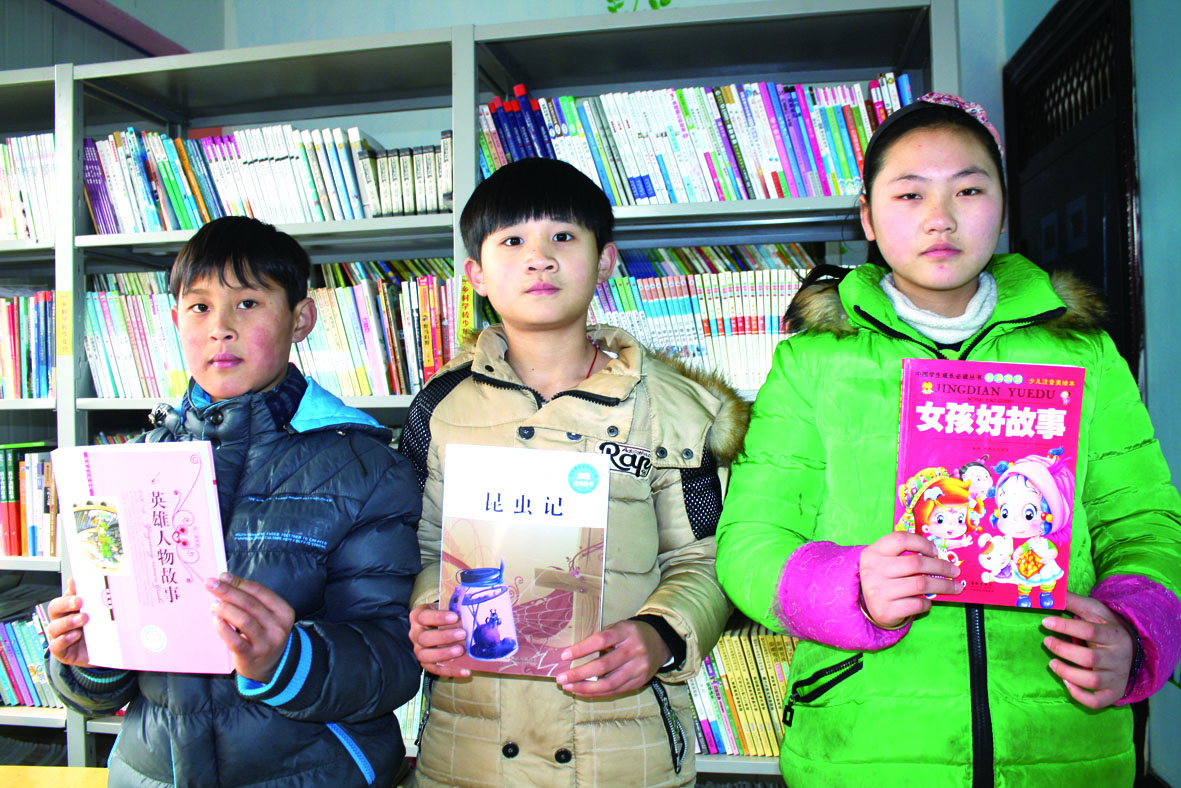 同学们向新闻官展示自己最爱的书