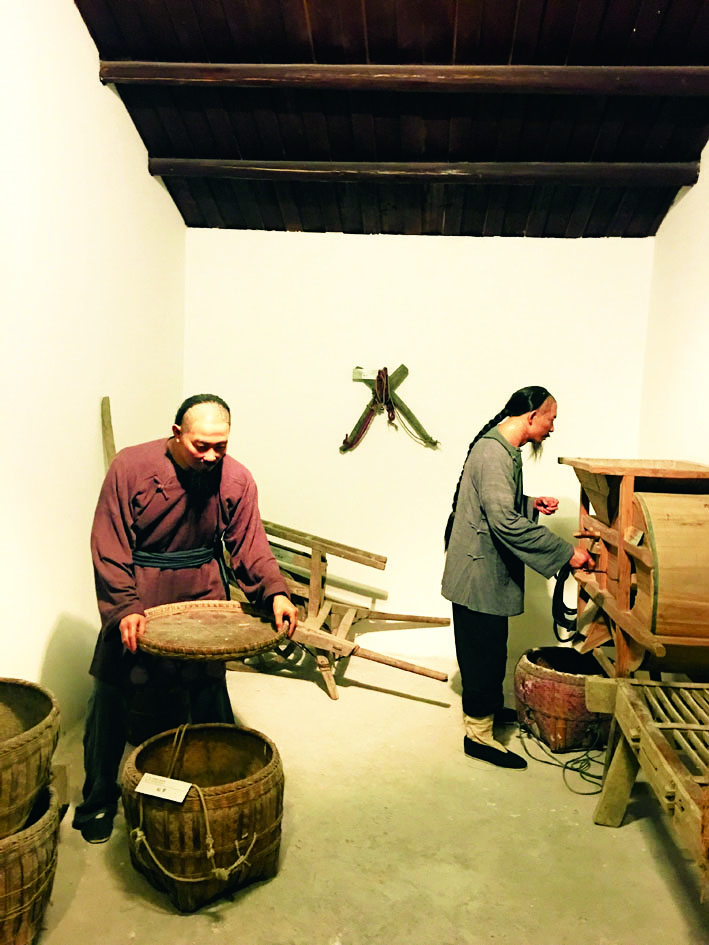 在稻米博物馆中,我们见到了一个个栩栩如生的蜡像。他们有的在筛米、脱壳,有的在磨米、揉面,有的在酿酒、打酒……真实地反映了劳动人民的辛勤劳作和收获时的场景。