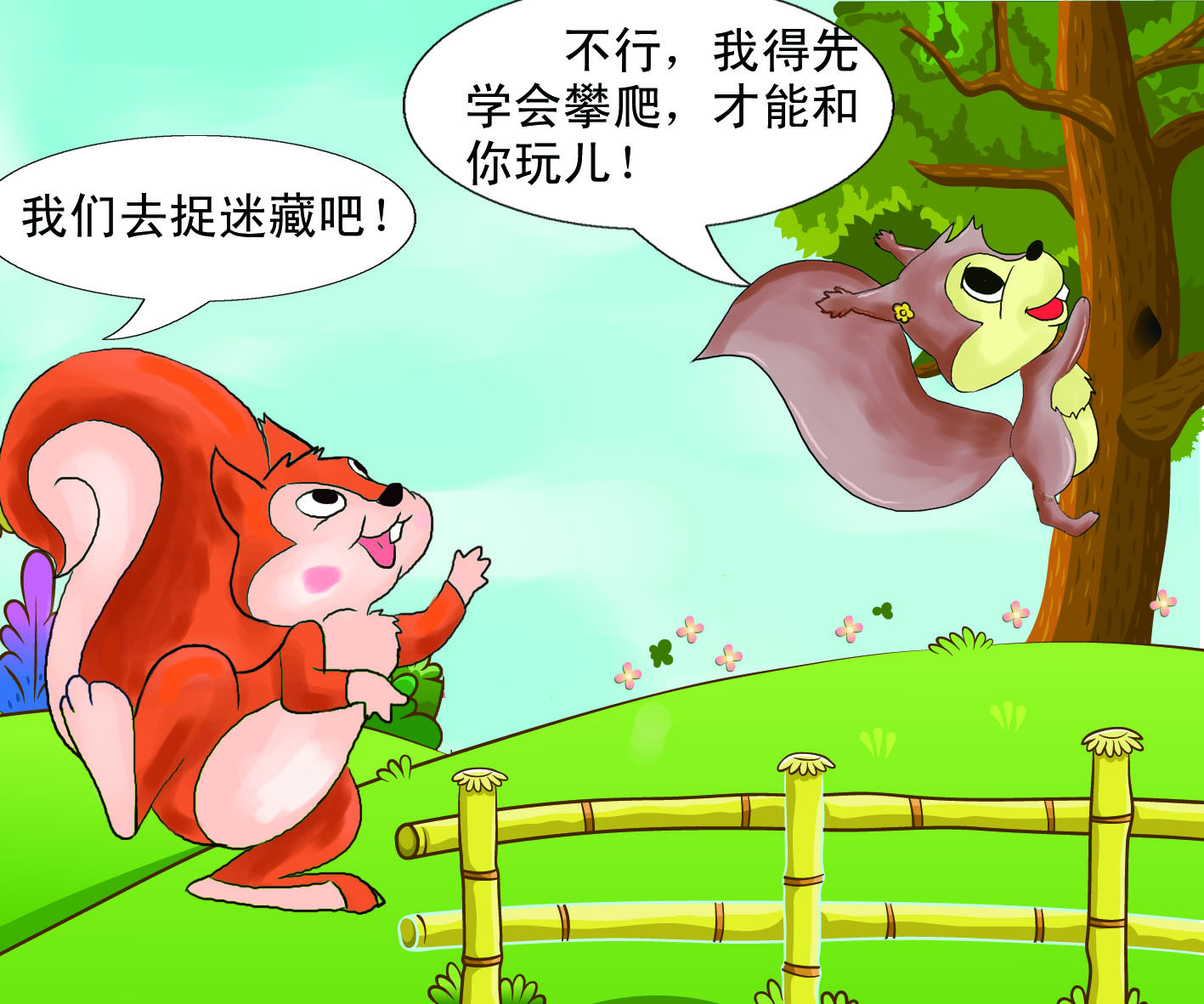 在广袤的森林中,有一只不学无术的小松鼠,它每天既不学习爬树,也不愿意储存食物。在它的世界里,只有快乐地玩耍是第一位的。