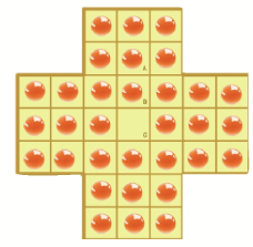 1.正方形版棋盘:玩法和标准版一样。棋盘的格子更多,玩起来会简单一点哦! 2.三角形版棋盘:玩法同上。三角形棋盘中,棋子顺着三角形的三条边线的方向,在粉色格子中跳动。比如,第一步可以将C格棋子跳进A格中,B格棋子被“吃掉”。 上期超级大头王答案: |